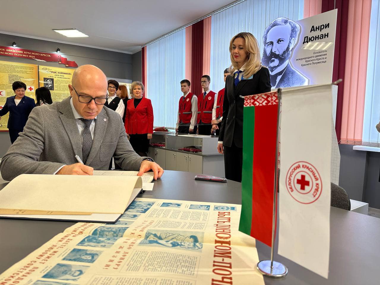 На открытии присутствовал Генеральный секретарь Белорусского Красного Креста Дмитрий Шевцов, который передал в музей уникальные материалы — листовки и плакаты советских времён на тему популяризации донорства, которые печатались в Гомельской области.